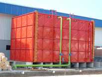 二、FRP組裝式水箱:水箱主體設計強度考慮不同地區的風壓、積雪、地震及人體載荷等因素,可根據用戶需要組裝成不同噸位的水箱。并設有揚水、給水、溢水、排水、入孔、梯水等裝置,是現代建筑及舊水箱改造最理想的產品。本水箱及樹脂經中國預防醫學科學環境衛生與衛生工程研究所及上海衛生防疫站的化學毒理學評價認為:未發現具有毒性及禁用化學用品。浸泡水質符合國家飲用水質標準。